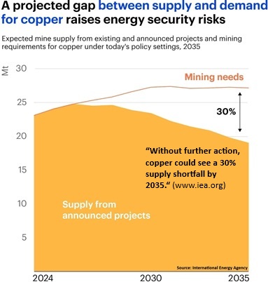 The International Energy Agency (IEA) estimates that even under current policies, copper demand could exceed supply from announced projects by 30% by 2035. This is not a cyclical shortage but a structural collision – a mismatch between an inflexible supply base and accelerating, inelastic demand.