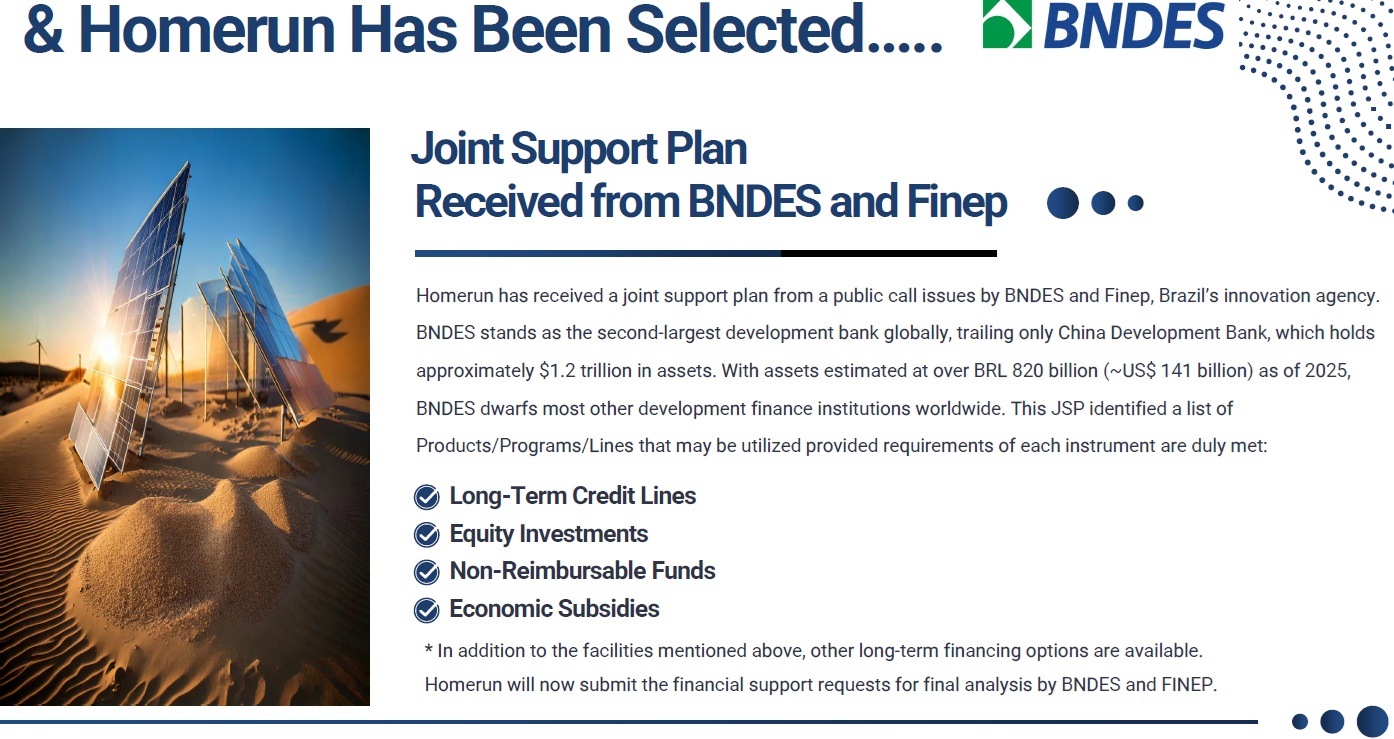 Homerun is aligning with Brazil’s industrial strategy to add value domestically rather than exporting raw minerals. With full government backing, financing pathways through BNDES and Finep, and a unique geological advantage, the company is advancing a multi-pronged project pipeline: Silica purification, solar glass, energy storage, and renewable technologies.
